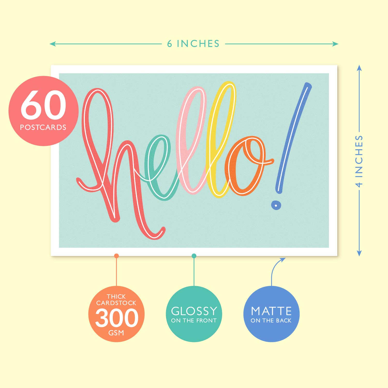Sweetzer & Orange Hello Postcards Pack (60 Post Cards) 4×6 Flyers for Kids and Adults, 300gsm Notelets, Blank Greeting tokens, Mint Green positive affirmation Cards