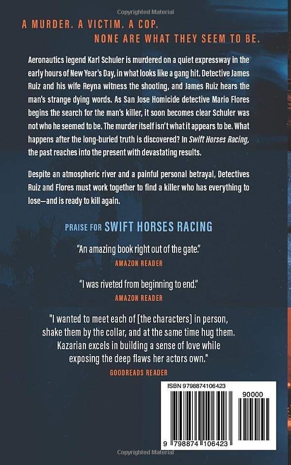 Detective Mario Flores has a problem. It’s a woman, and no amount of bourbon can wash her from his thoughts. That night on the expressway, it all happened so fast. Bullets from a speeding car killed a revered scientist in what looks like a gang hit. After meeting the witnesses, James Ruiz and his gorgeous wife Reyna, Mario plunges into the investigation, only to find that no one is who they seem on the surface…not even himself. “A true page turner.” AMAZON REVIEW “I was reminded of Ann Cleeves’s and William Kent Kruger’s ability to dive into the psyche and emotions of each character.” AUDIBLE REVIEW “I wanted to meet each of [the characters] in person, shake them by the collar, and at the same time hug them. Kazarian excels in building a sense of love while exposing the deep flaws her actors own.” GOODREADS REVIEW