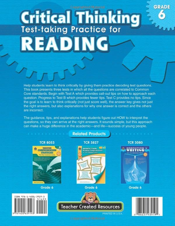 This book provides sixth-grade students with tools and practice for critical thinking and test-taking strategies.