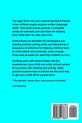 In this book, a Montessori teacher shows you a complete series of materials and activities you can easily use at home to teach your 3-6 year old to read and write. Most children experience a natural Sensitive Period for acquiring reading and writing skills between 3-6 years of age. This is the time when learning written language is the easiest and most natural for a child. Having a solid foundation in reading and writing prepares a child perfectly for early success in school. Helping a young child learn to read and write is not difficult. This book shows clear, sequential materials and activities that make learning these skills natural and fun. You start by helping your child develop pre-reading and pre-writing skills using fun materials. This leads naturally into writing letters and numerals, and a simple three step sequence of activities for helping your child learn to read. You can do this! Most of the materials use common, inexpensive items. Recommendations are also given for a selection of affordable Montessori and other materials for optional use, as well as for the very best tablet apps for reading and how to guide your child in using them. Also included is a link to download a fantastic free set of 18 printable materials, including 8 classroom quality printables from Montessori Print Shop. Numerous links throughout the eBook connect you to the best online information sites and printable resources (most free). This feature alone saves you hundred of hours scouring the web for what you need. This book shows you how to give your child reading and writing skills that will last a lifetime. Get started today!