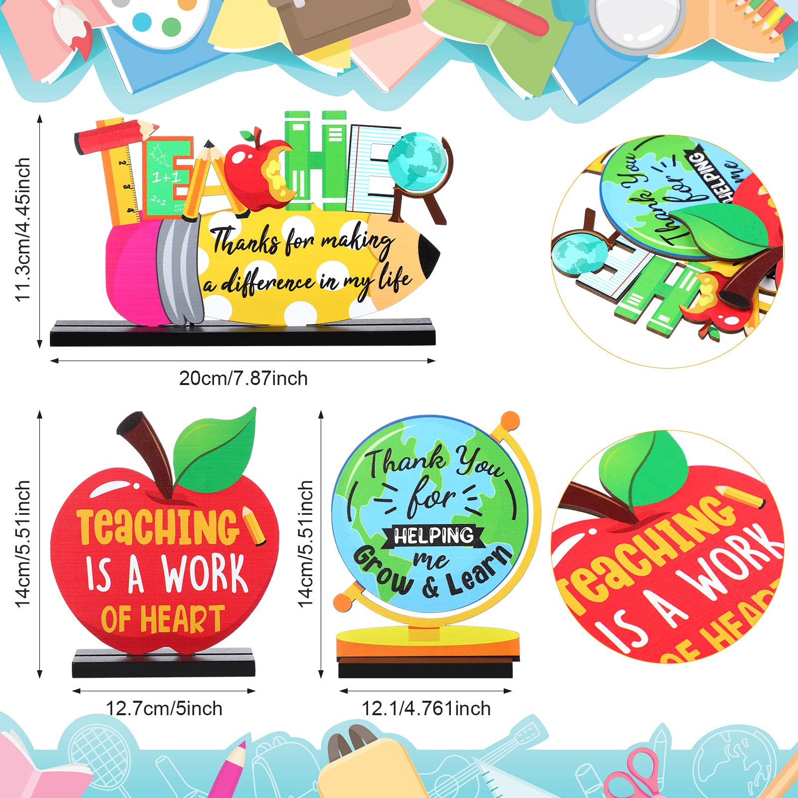 - Teacher appreciation table decoration: suitable for teachers table centerpieces, you will get 3 pieces teacher signs in 3 different patterns and sizes, please make sure the size before you buy