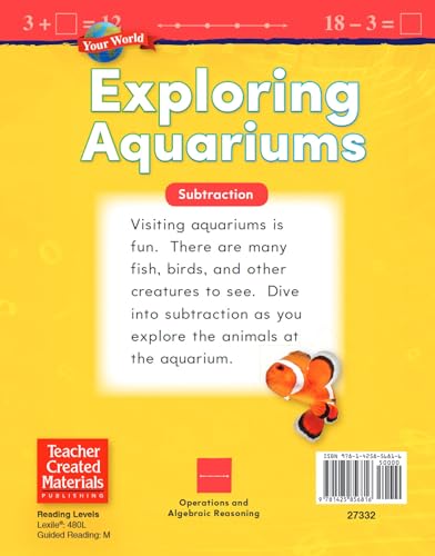 Visiting an aquarium is fun. There are many fish, Sharks, birds, penguins, sea otters, and other creatures to see. Dive into Learning subtraction as you read about the many animals at the aquarium! this nonfiction math book combines math and reading skills, and uses real-life examples of problem solving to teach subject-area content. The dynamic images, detailed sidebars, practice problems, and math diagrams make Learning subtraction easy and fun. Text features include a table of contents, a glossary, an Index, and captions to build vocabulary and increase understanding of math and reading concepts. An in-depth problem-solving Section provides additional Learning and practice opportunities. Engage students with this high-interest math book
