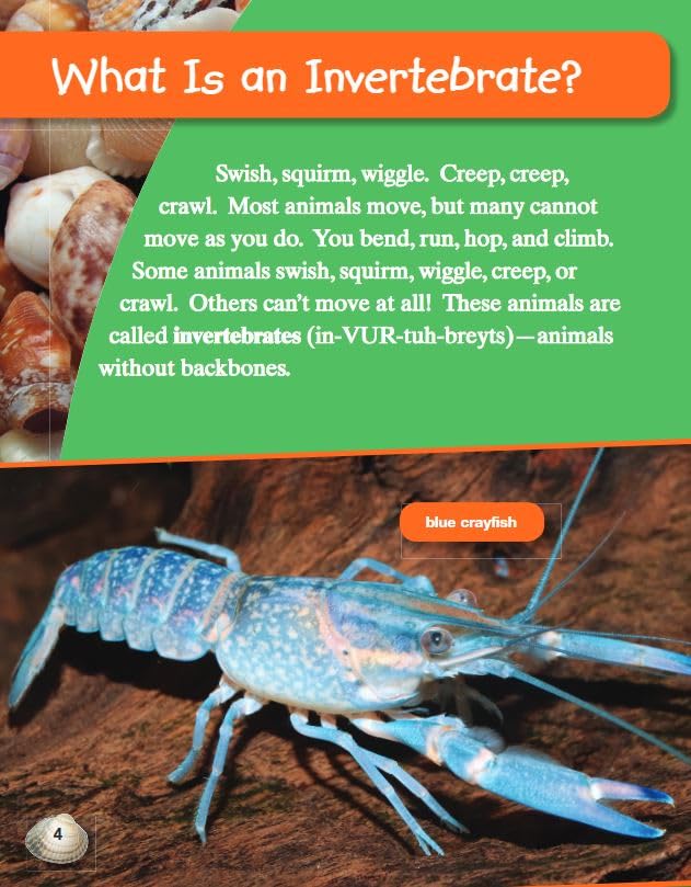 Did you know that most animals in the world don’t have backbones? Learn more about invertebrates in this engaging nonfiction book. Readers will learn all about mollusks, arthropods, arachnids, and crustaceans while being stimulated from cover to cover with its detailed images and charts, intriguing facts, and informative text. About Shell Education Rachelle Cracchiolo started the company with a friend and fellow teacher. Both were eager to share their ideas and passion for education with other classroom leaders. What began as a hobby, selling lesson plans to local stores, became a part-time job after a full day of teaching, and eventually blossomed into Teacher Created Materials. The story continued in 2004 with the launch of Shell Education and the introduction of professional resources and classroom application books designed to support Teacher Created Materials curriculum resources. Today, Teacher Created Materials and Shell Education are two of the most recognized names in educational publishing around the world.