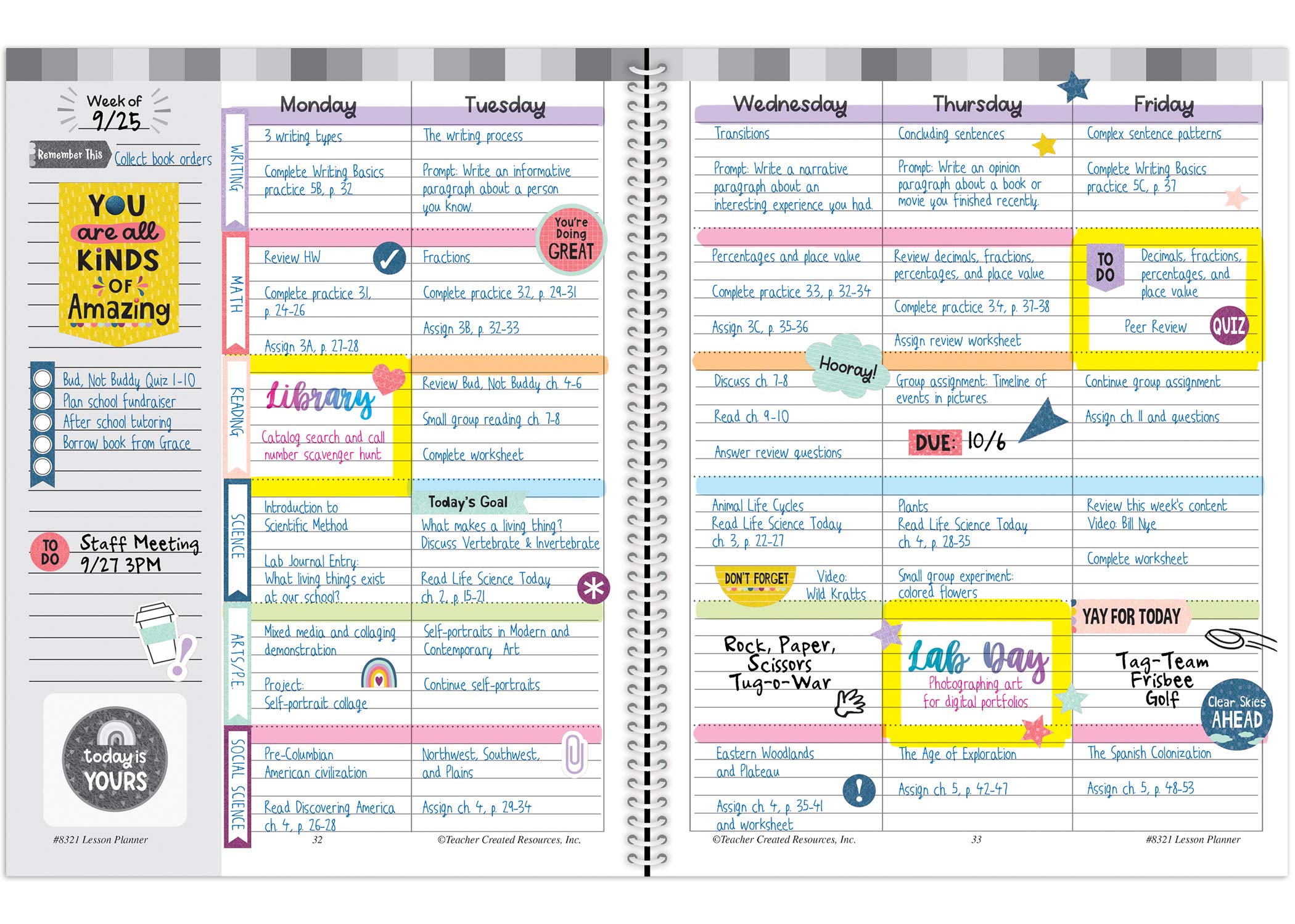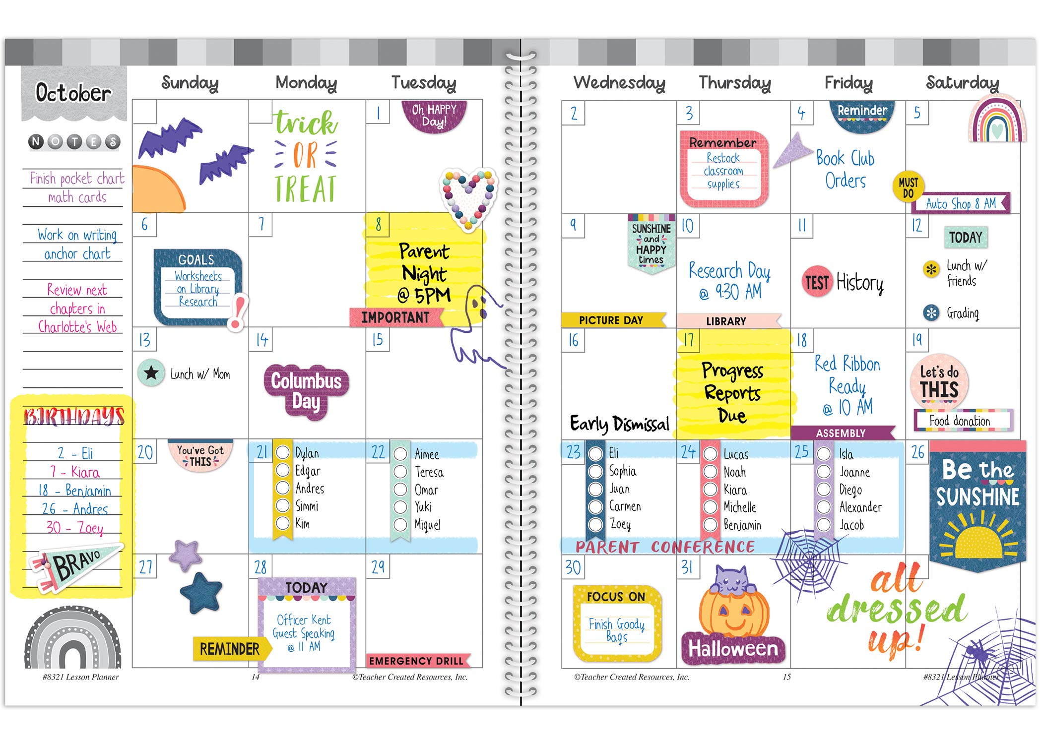 - 12 large monthly planning calendar spreads are also included for year-long lesson planning as well as for scheduling appointments, conferences, and events.