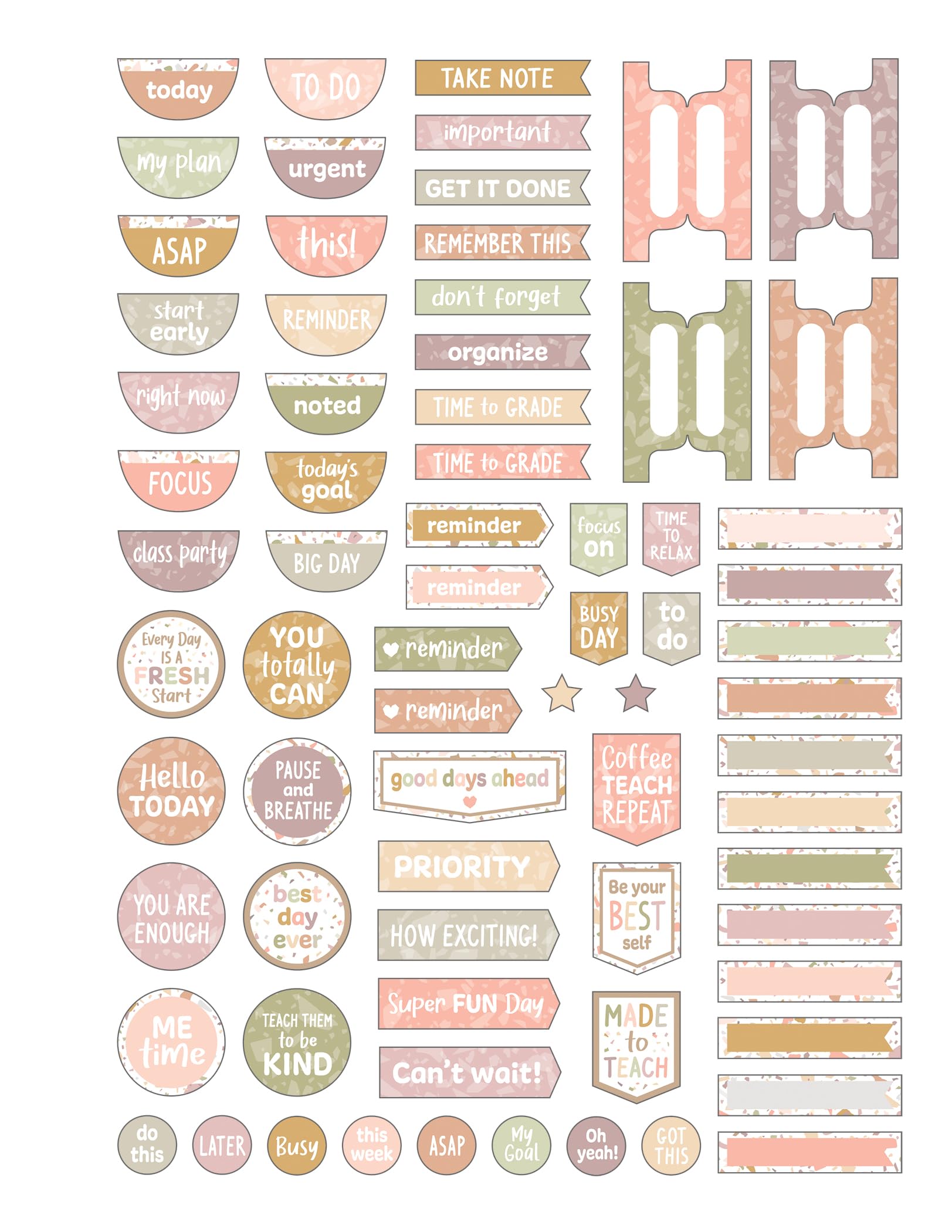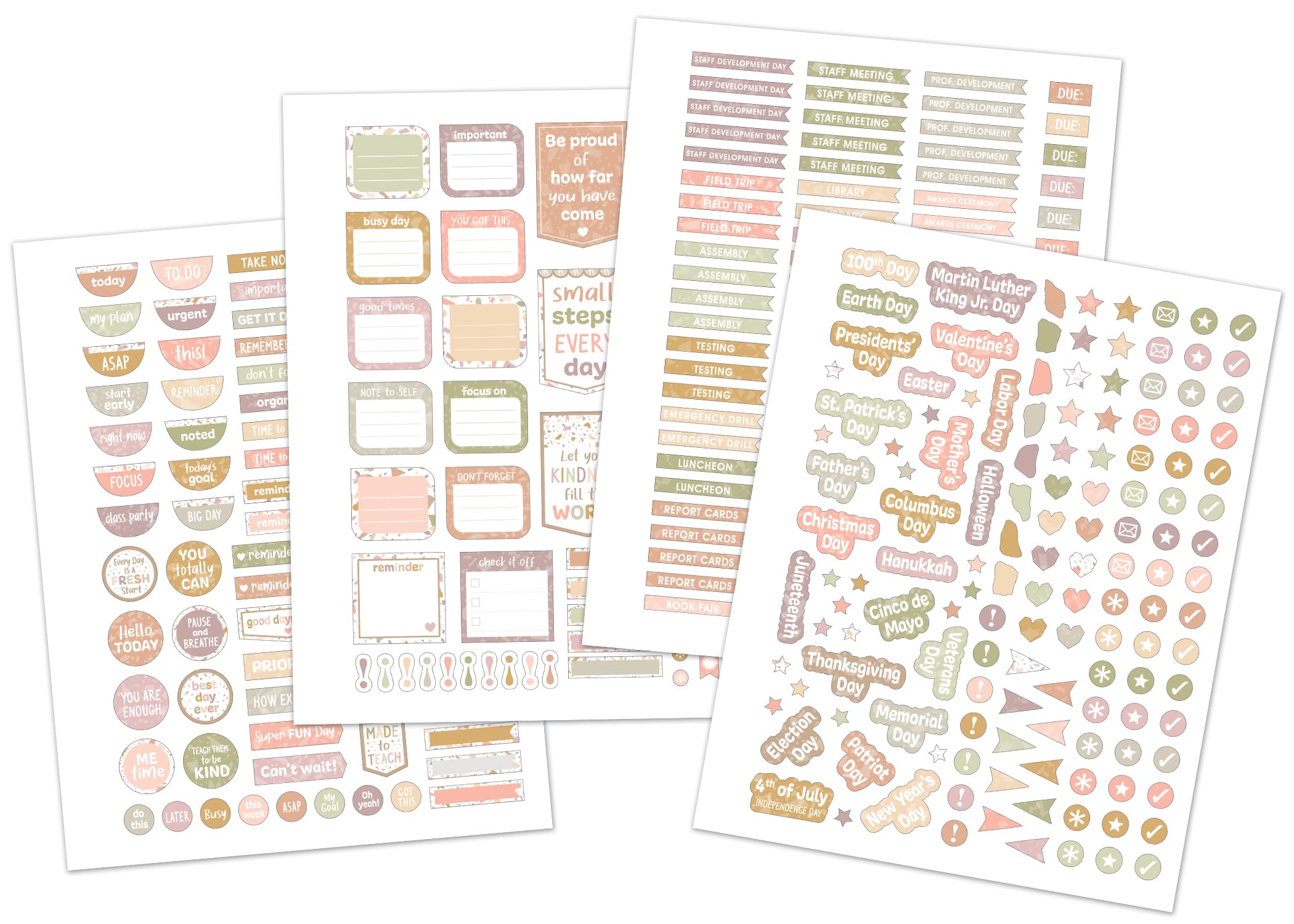 We love it when a plan falls into place, and we’re confident you’ll plan for success with this sophisticated, earth-toned lesson planner. Keep up to 40 weeks of daily lesson plans in one convenient book. This book includes substitute teacher information, student roster sheets, and memorable quotations to use and discuss throughout the year. Twelve large monthly planning calendar spreads are also included for year-long lesson planning as well as for scheduling appointments, conferences, and events. The lesson planner also includes a variety of colorful stickers to use throughout the year. Whether you need to prioritize the day’s events, add weekly reminders, highlight something special, or simply provide a bit of inspiration, these cheerful stickers will keep your lessons beautifully organized.