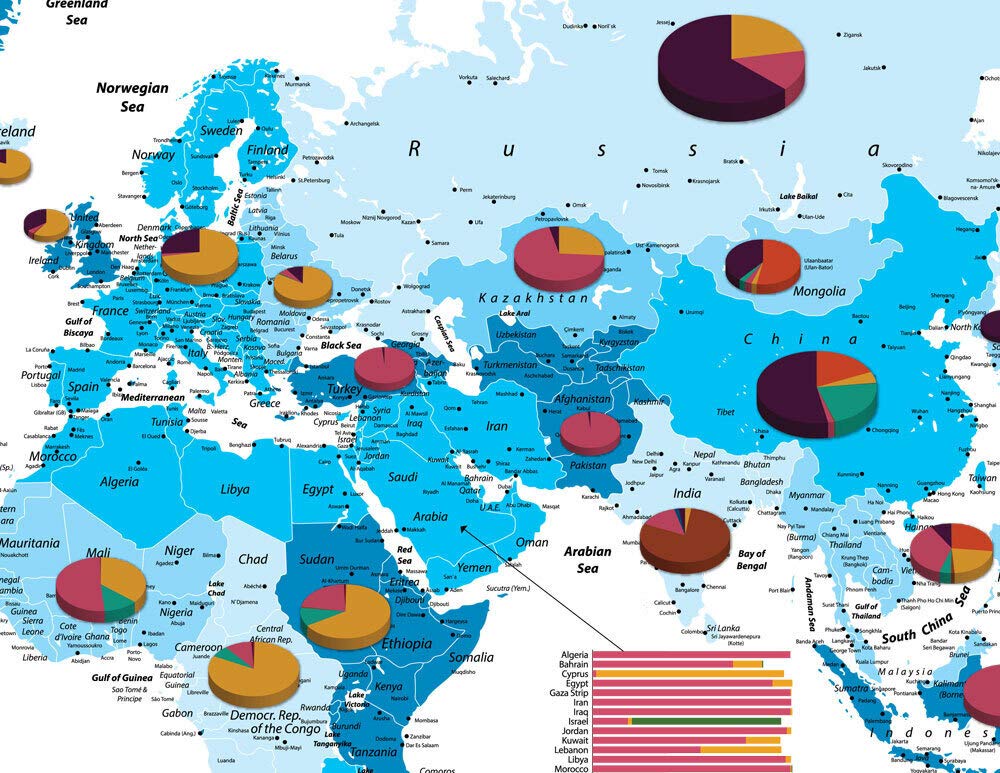 This world map provides students with a visual resource for learning about the geography and key tenets of major world religions.