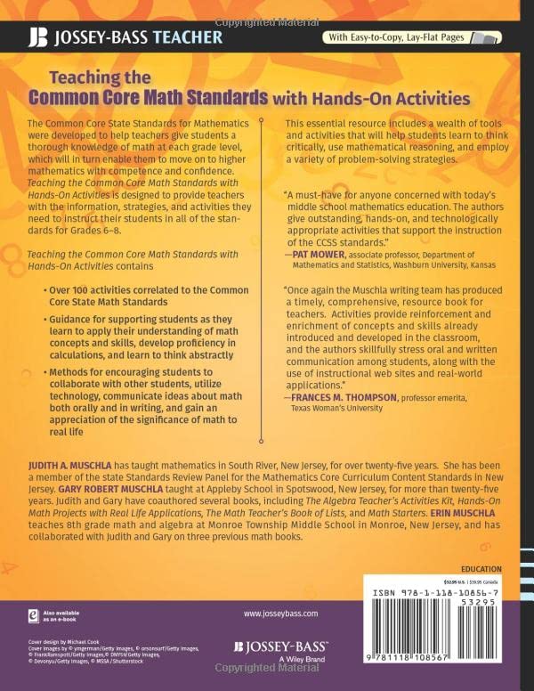 Helpful advice for teaching Common Core Math Standards to middle-school students The new Common Core State Standards for Mathematics have been formulated to provide students with instruction that will help them acquire a thorough knowledge of math at their grade level, which will in turn enable them to move on to higher mathematics with competence and confidence. Hands-on Activities for Teaching the Common Core Math Standards is designed to help teachers instruct their students so that they will better understand and apply the skills outlined in the Standards. This important resource also gives teachers a wealth of tools and activities that can encourage students to think critically, use mathematical reasoning, and employ various problem-solving strategies. Filled with activities that will help students gain an understanding of math concepts and skills correlated to the Common Core State Math Standards Offers guidance for helping students apply their understanding of math concepts and skills, develop proficiency in calculations, and learn to think abstractly Describes ways to get students to collaborate with other students, utilize technology, communicate ideas about math both orally and in writing, and gain an appreciation of the significance of mathematics to real life This practical and easy-to-use resource will help teachers give students the foundation they need for success in higher mathematics.