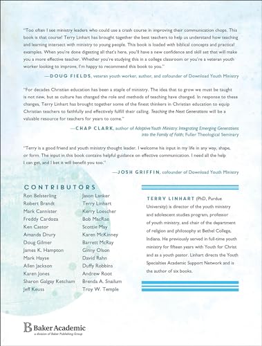 How Ministers Can Be Excellent and Effective Teachers Effective teaching is important not only to the Christian faith but to the success and impact of Christian ministry. This book champions the role of teaching as a necessary skill for ministers to develop, equipping them to work effectively for the spiritual growth of young people. Terry Linhart, who has more than twenty-five years of experience training youth workers, brings together expert Christian educators representing a broad array of evangelical institutions and traditions to show how teaching connects to discipleship and the church in current contexts. Designed for the classroom, the book covers a wide range of topics and includes helpful illustrative diagrams, tables, line drawings, and charts.