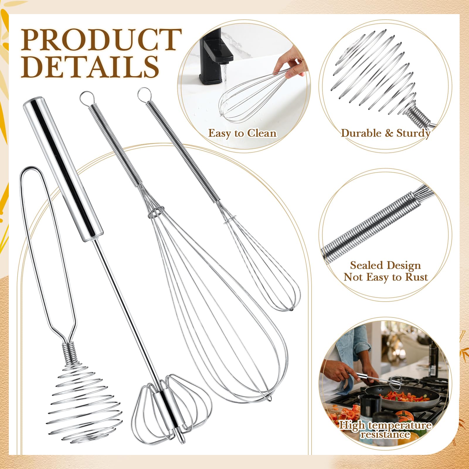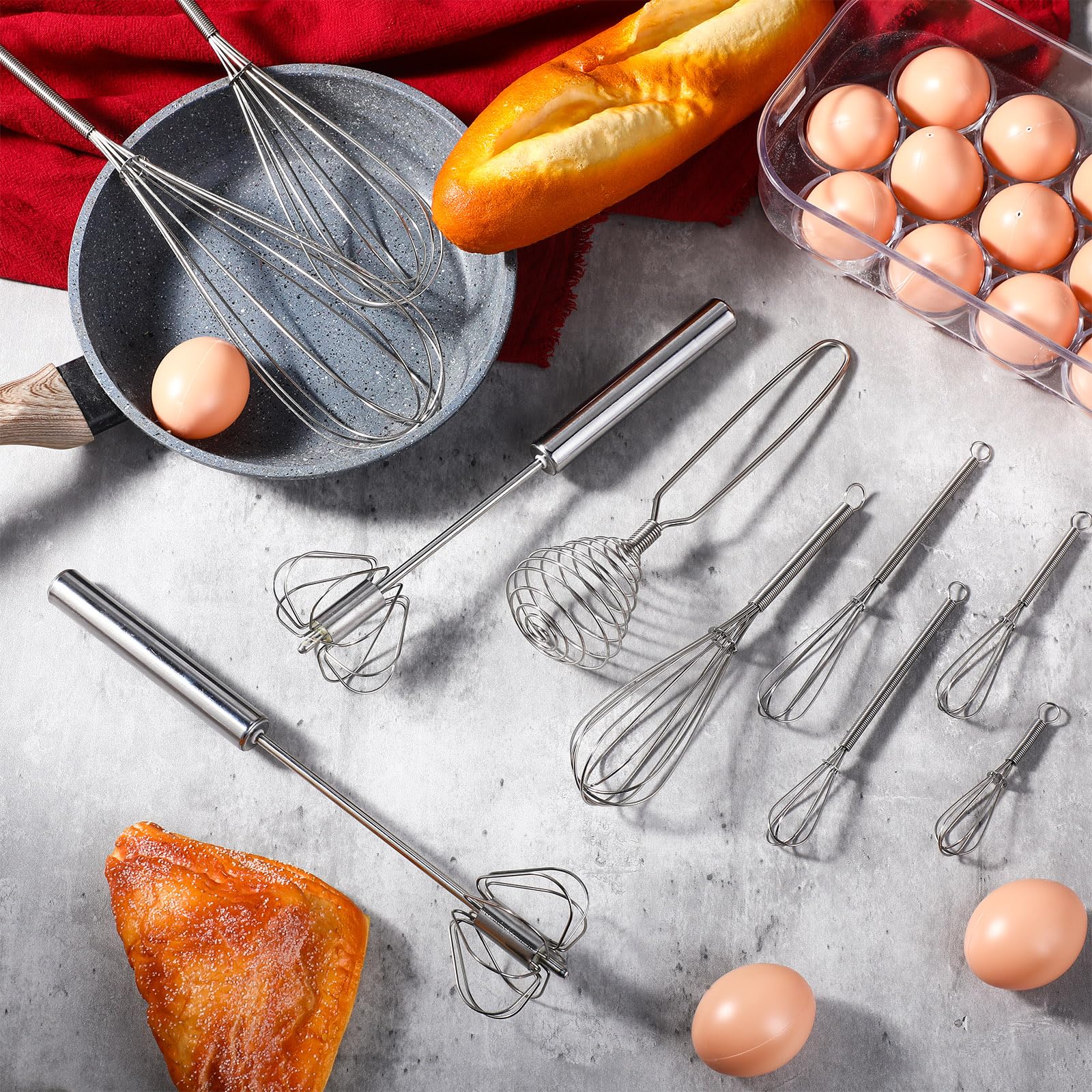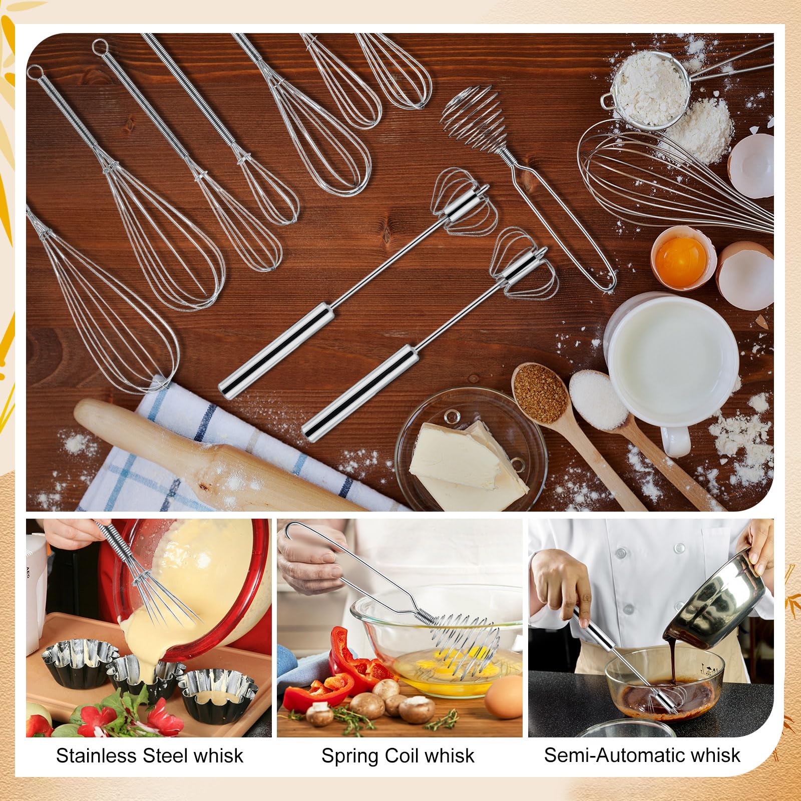 • Multiple Sizes and Function: our stainless steel whisks set include different sizes whisks from mini to large sizes. It also has multiple function like manual and semi-automatic whisks, meet the different mixing needs of the whole family