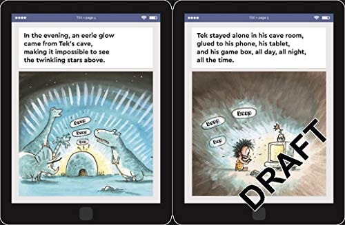 Is it a book…or a digital tablet? From bestselling and award-winning author and creator of the MUTTS comic strip, Patrick McDonnell, comes a timely tale in a tablet-shaped package that’s the perfect antidote for those who always have a device in hand. “Ever-cute creatures deliver the story’s tech-addiction message with a grin, and clever references abound.” –Publishers Weekly, starred review Here is a hilarious (and heartfelt) reminder of how technology can take us backward…all the way to the times of prehistoric man! Tek is a cave boy in love with tech: his tablet, videogames, phone, and TV keep him deep in his cave, glued to his devices, day in and day out. He never sees his friends or family anymore–and his ability to communicate has devolved to just one word: “UGH!” Can anyone in the village convince Tek to unplug and come outside into the big, beautiful world? A distinctive, digitally-inspired package and design cleverly evokes the experience of using an electronic device that eventually shuts down…and after a magic page turn, Tek reconnects with the real world. Don’t miss these other picture books by Patrick McDonnell: Me…Jane The Gift of Nothing The Gift of Everything Art Hug Time Tek The Little Red Cat Who Ran Away and Learned His ABC’s (the Hard Way) A Perfectly Messed-Up Story The Monsters’ Monster