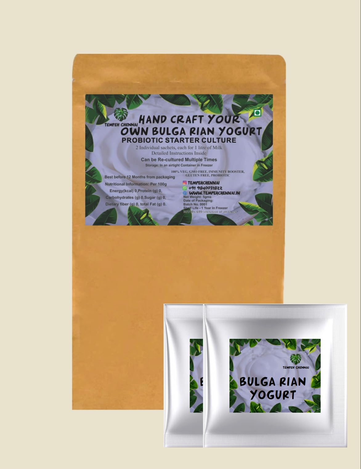 2 Individual Sachets Mix one sachet in 1 liter of milk. Looking to make your own delicious Greek yogurt at home? Look no further than our Greek yogurt starter culture! Our carefully crafted blend of vegan, gluten-free ingredients makes it easy to whip up a batch of creamy, tangy yogurt that’s perfect for breakfast, snacks, and more! Make your own delicious and healthy Greek yogurt at home with our heirloom variety starter culture. This easy-to-use culture allows you to create thick, creamy, and buttery yogurt using the milk of your choice, without the need for added sugar or preservatives. Our starter culture is an heirloom variety, meaning that it can be used to make batch after batch of yogurt, without the need to continually purchase new cultures. Each package contains two packets of starter culture, which can make up to 10 liters of yogurt. To use the starter culture, simply add one packet to your milk and allow it to ferment at a temperature of 40-45degC for 6-8 hours. After fermentation, strain the yogurt to remove excess whey and enjoy as desired. With our heirloom variety of Greek yogurt starter culture, you can enjoy the delicious taste and health benefits of Greek yogurt, all from the comfort of your own home.