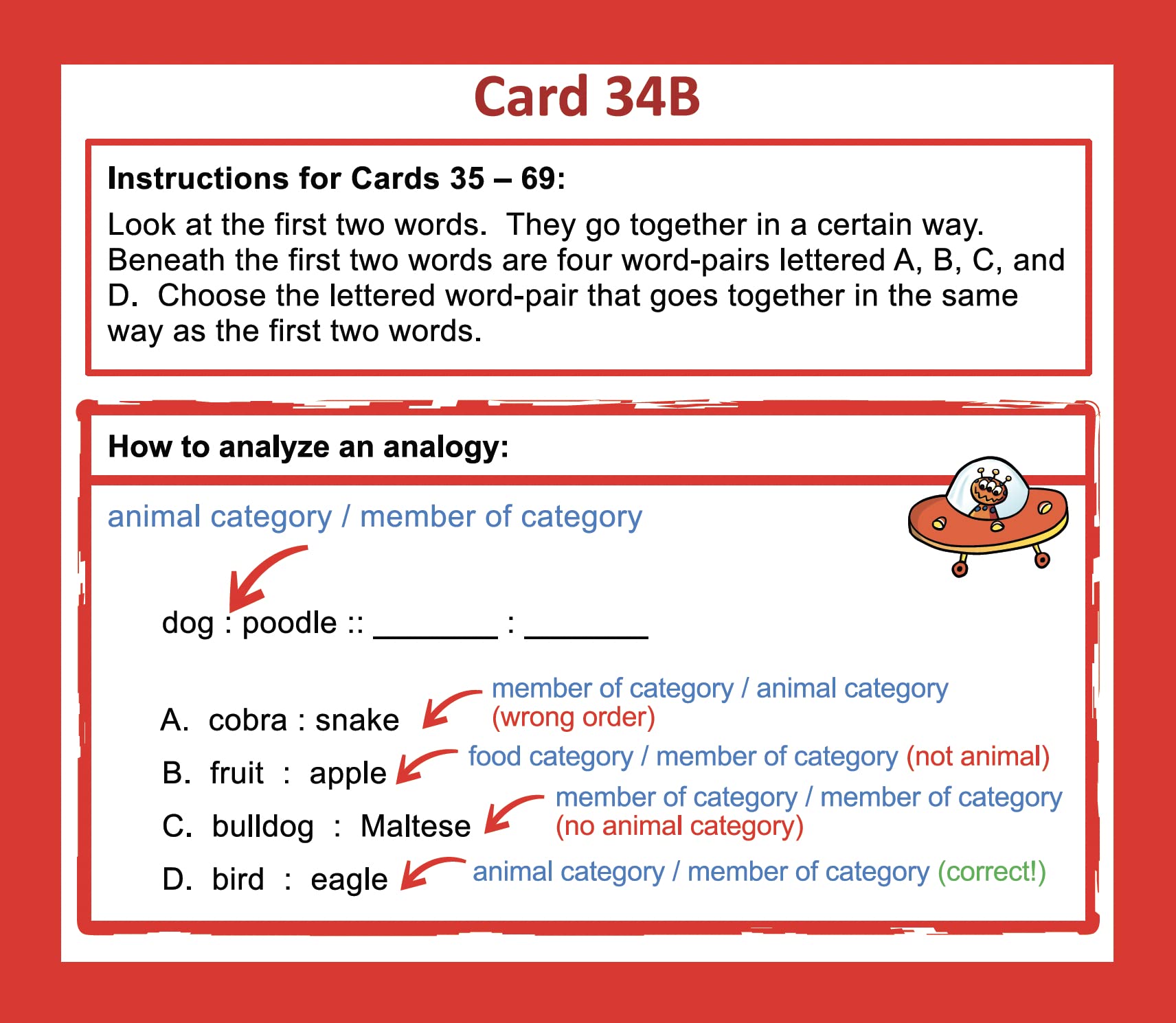 PREP YOUR CHILD TO SCORE HIGHER ON THE SCAT: Build verbal and math skills for both sections of the Intermediate Level SCAT test. Cards also include our experts’ best test-taking tips for acing the SCAT, Create-Your-Own-Analogy exercises, and links to online webinars about the SCAT test.