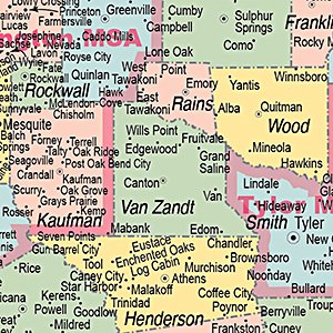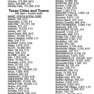 Perfectly sized at 3 ft. by 3 ft., this graphically pleasing and easy to read Texas County Town map is an excellent planning tool with Texas counties, MSAs and over 1200 cities and towns indexed with population. It also features a handy mileage chart.