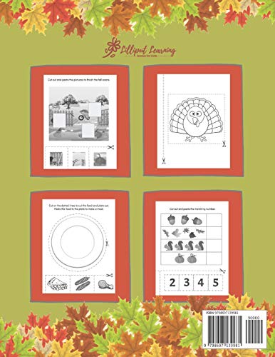 Thanksgiving Scissor Skills Activity Book: Cutting Coloring & Pasting Practice Workbook for Kids – Preschoolers and Kindergarten for Educational Readiness