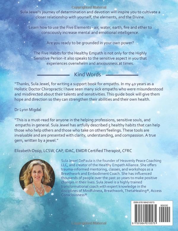 Sula Jewel’s journey of determination and devotion will inspire you to cultivate a closer relationship with yourself, the elements, and the divine. She shares practical and easy tools while weaving in real life experiences to support anyone to move from overwhelm to homeostasis, a state of calmness and harmony. You will be inspired to create new habits to increase self care and overall mindfulness. Learn how to use the five elements, water, earth, fire and ether to consciously uplevel mental and emotional intelligence. The Five Habits for the Healthy Empath is not only for the highly sensitive person, it also speaks to the sensitive aspect in you that experiences overwhelm and anxiousness at times. Are you ready to be grounded in your power?