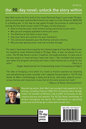 Get the first draft of your NOVEL or MEMOIR down quickly! The 90-Day Novel is Alan Watt’s day-by-day guide through the process of getting the first draft of your novel or memoir onto the page. The 90-Day Novel was workshopped at L.A. Writers’ Lab over the course of ten years and has helped thousands of writers complete their work. A number of Watt’s students have gone on to become bestselling authors and win major literary awards. Many writers credit The 90-Day Novel as their guide, from YA author Allen Zadoff (The Unknown Assassin Series, Little Brown) “Al Watt is a master teacher with a brilliant, intuitive understanding of story,” to Ottessa Moshfegh (Man Booker Prize Finalist for Eileen, Penguin, Random House) “I went out and bought a book called The 90-Day Novel by Alan Watt. It’s ridiculous, claiming that anybody can write a great book, and quickly too, but it ended up as a Oulipian thing…it was actually interesting to conform to the rules.”The method was inspired by Watt’s own experience. He wrote the first draft of his novel Diamond Dogs in just under 90 days and sold the North American rights to Little, Brown in a bidding war. The book became a national bestseller, won a slew of awards including France’s 2004 Prix Printemps (best foreign novel). The 90-Day Novel is structured into three parts. Part One describes the process of getting your story from your imagination to the page and prepares you, through a few simple, powerful writing exercises to access the story within. Part Two is The 90-Day Novel, a series of 90 daily letters that will guide you through the hero’s journey. Writers often tend to get stuck halfway through, mired somewhere in their “idea” of the story. The 90-Day Novel will show you how and why you got stuck, and how to get to the end of your first draft. Part Three is a compendium of stream-of-consciousness writing exercises designed to help you access the primal forces in your story, as well as the Structure Questions that will invite up images at key stages in your hero’s journey.The 90-Day Novel teaches you how to distill your plot to its nature, and clarifies the mysterious process of assembling vague disparate ideas and images into a coherent narrative. Working in this way, story structure (which is often taught as a formula) becomes a springboard, setting you free to explore the far reaches of your imagination. “There are no rules,” Watt tells us. “Stay out of your left brain, and let your unconscious do the heavy lifting.” The 90-Day Novel clearly articulates the process of marrying the rigor of story structure to the wildness of the imagination, and in the process reminds us of something we so often forget…that writing is actually fun.~”For years I have been fascinated by the industry legend of how Alan Watt wrote his masterful novel, Diamond Dogs, in 90 days. Now, at last, he shares his secrets. The 90-Day Novel is smart, insightful, thorough and wise. It’s also one of the best books on novel-writing I have ever seen. I feel confident that anyone who takes this program seriously will have a solid manuscript to show for the effort.”- David Liss (national bestselling author and Edgar Award winner of A Conspiracy of Paper)”The idea of bringing a first draft of a novel to fruition seemed too daunting and overwhelming to even consider until I was introduced to The 90-Day Novel. Al’s methodology is deep and precise and helps unearth subconscious themes and characters in you that let the story almost tell itself.”- Rebecca de Mornay (actress/writer)