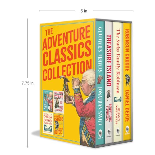 Hop on a literary voyage into the heart of adventure, discovery, and the human spirit.Daniel Defoe’s Robinson Crusoe tells the riveting tale of survival on a deserted island, while Robert Louis Stevenson’s Treasure Island takes readers on a thrilling quest for buried riches. Jonathan Swift’s satirical masterpiece, Gulliver’s Travels, offers a fantastical journey through strange lands, and Johann David Wyss’ The Swiss Family Robinson unfolds an epic tale of resourcefulness on a deserted island. The Adventure Classics Collection brings together all these timeless literary treasures. ” Every man desires to live long, but no man wishes to be old.” -Jonathan Swift Offers a variety of genres, including survival, adventure, satire, and family-centered tales. Inspirational stories that showcase the resilience and perseverance of the human spirit. Provides thrilling quests for buried treasures, satisfying the desire for escapism and excitement. The collection brings together iconic works of literature that have contributed significantly to the literary canon. Suitable for book clubs or group discussions.