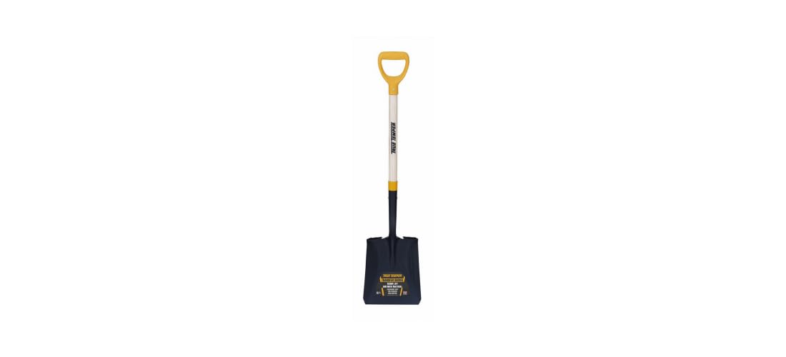 - Square point forged steel blade for transferring materials like soil, gravel, rocks, or sand