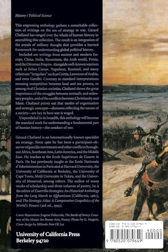This engrossing anthology gathers together a remarkable collection of writings on the use of strategy in war. Gerard Chaliand has ranged over the whole of human history in assembling this collection–the result is an integration of the annals of military thought that provides a learned framework for understanding global political history. Included are writings from ancient and modern Europe, China, Byzantium, the Arab world, Persia, and the Ottoman Empire. Alongside well-known militarists such as Julius Caesar, Napoleon, Walter Raleigh, Rommel, and many others are “irregulars” such as Cortes, Lawrence of Arabia, and even Gandhi. Contrary to standard interpretations stressing competition between land and sea powers, or among rival Christian societies, Chaliand shows the great importance of the struggles between nomadic and sedentary peoples, and of the conflicts between Christianity and Islam. With the invention of firepower, a relatively recent occurrence in the history of warfare, modes of organization and strategic concepts–elements reflecting the nature of a society–have been key to how war is waged. Unparalleled in its breadth, this anthology will become the standard work for understanding a fundamental part of human history–the conduct of war. “This anthology is not only an unparalleled corpus of information and an aid to failing memory; it is also and above all a reliable and liberating guide for research. . . . Ranging “from the origins to the nuclear age,” it compels us to widen our narrow perspectives on conflicts and strategic action and open ourselves up to the universal.”–from the Foreword
