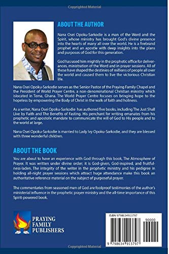 The Atmosphere of Prayer is a book written under divine order. It contains relevant information on prayer which I believe every believer ought to know as far as our Christian walk and prayer are concerned. Topics discussed in this publication include: The Weapons of Prayer, Praying in Tongues, Hindrances to Prayer, The role of fasting in your Prayer Life, and many other exciting topics on prayer. The integrity of the author in the prophetic ministry and his pedigree in holding all-night prayer sessions every week make this book an authoritative reference material on the subject of prayer. Grab a copy of this book and experience a total new prayer life.