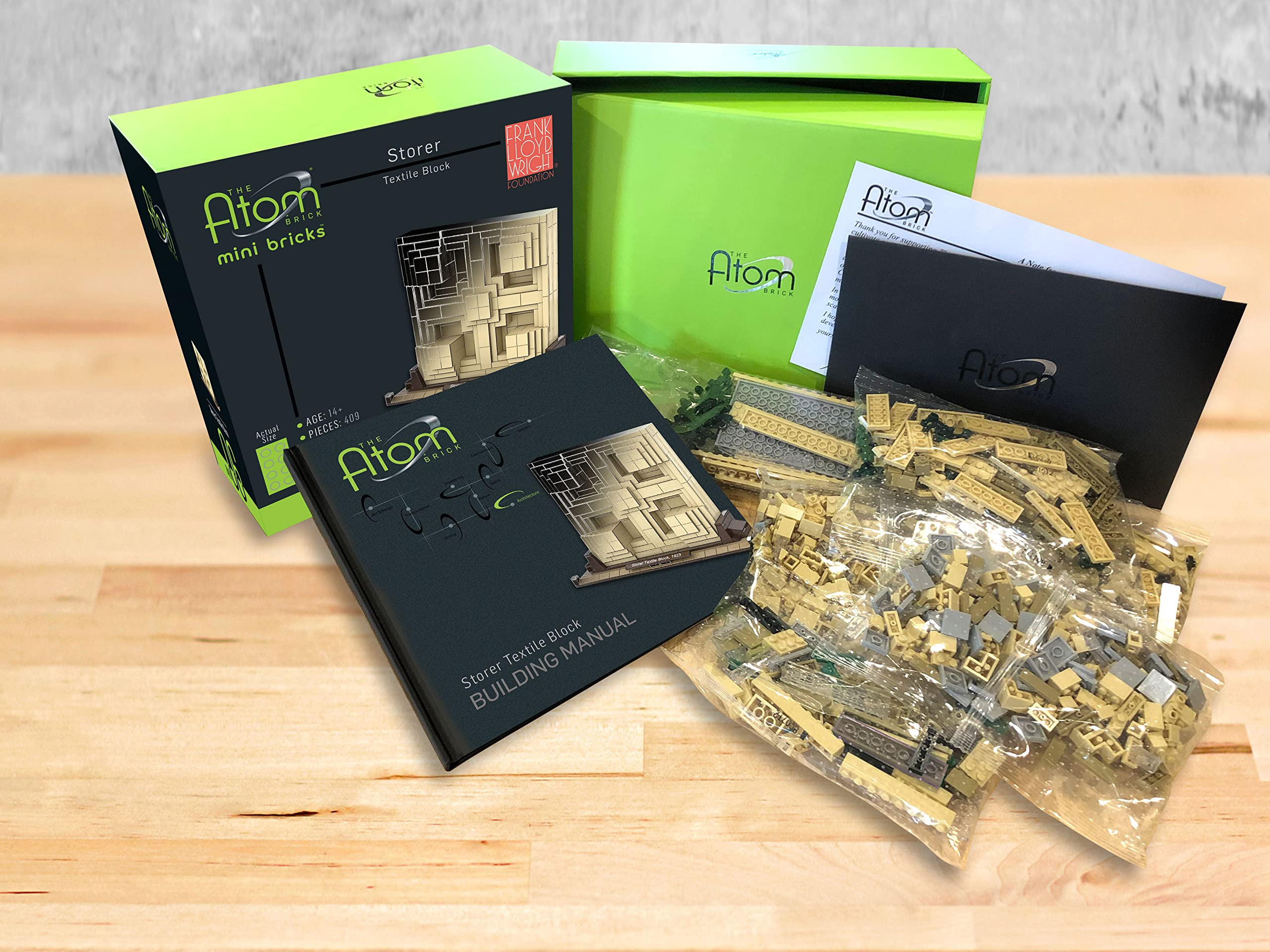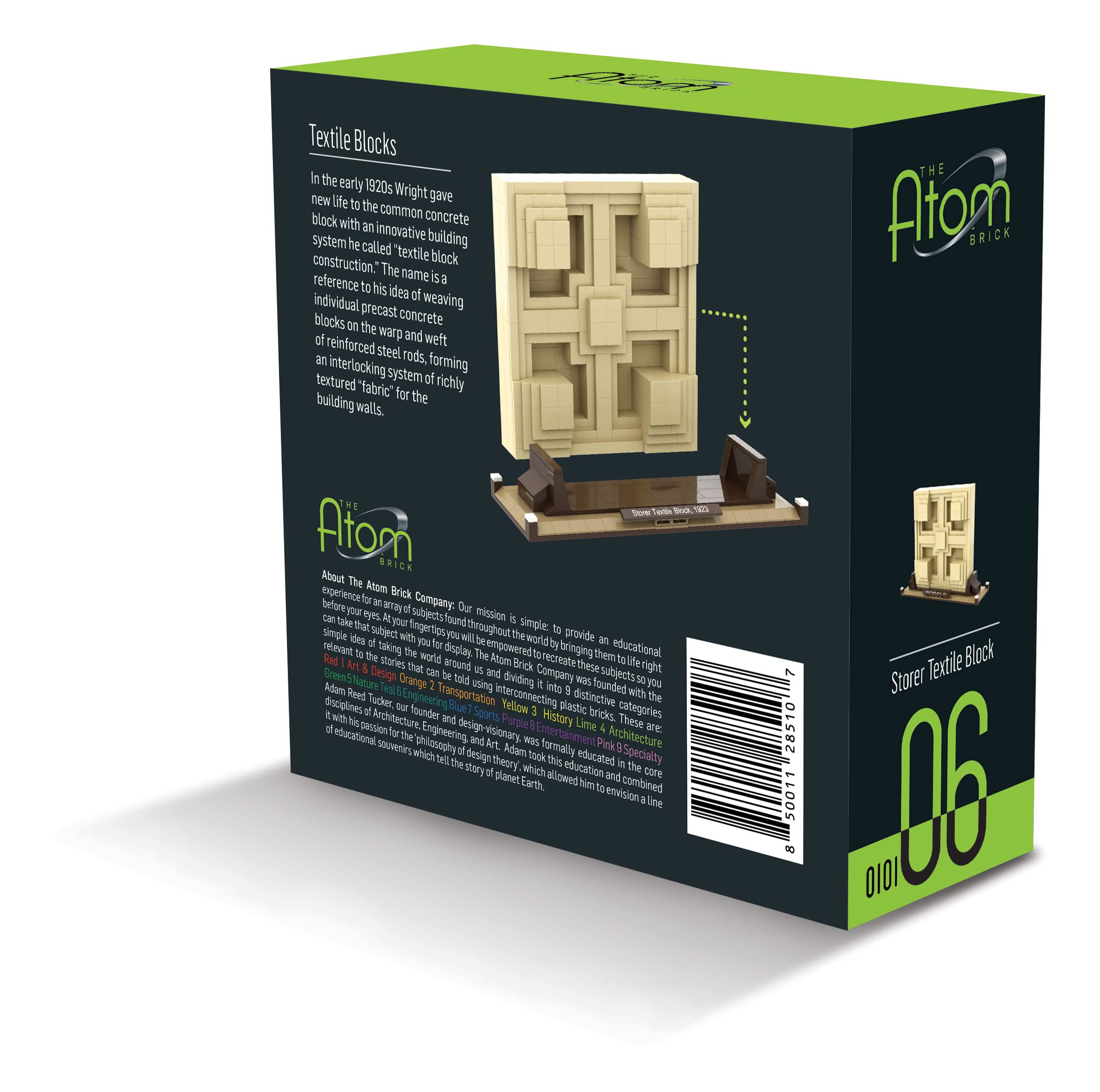 The Storer Textile Block set from The Atom Brick recreates one of the iconic textile block designs from Frank Lloyd Wright using the building block of design. Sets from The Atom Brick are created with the mission to inspire builders to recreate and learn about the world around them using smaller interconnecting plastic bricks. Built Product Dimensions: 8″ W x 6.25″ L x 2.5″ H The Storer Textile Block building set comes with a hardbound instruction book featuring details on the history of the Storer House and the Textile Block design details created by Frank Lloyd Wright. Builders of all ages can appreciate the building style and display a beautiful model when complete! Built in 1923, The Storer House was on of four textile block homes designed by Frank Lloyd Wright. Wright used the textile block motif in decomposed granite and concrete to visually unify the home with the hillside it was built in to creating the impression that the home was a man-made extension of the landscape. Builders of The Atom Brick Storer Textile block will gain an appreciation for the detail and design the textile block added to this residence. Sets from The Atom Brick bring unique designs for builders of all ages to create and display!