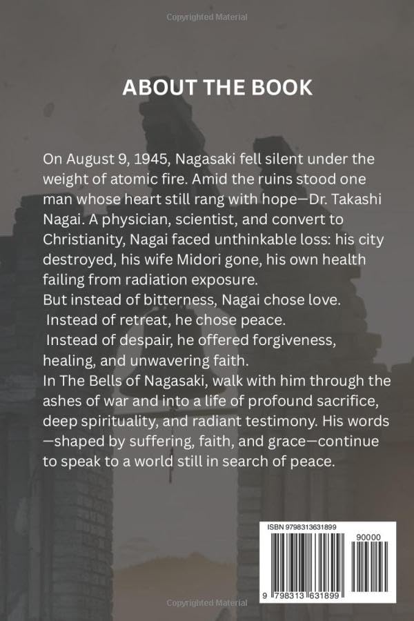 The Bells of Nagasaki: The Life and Legacy of Takashi Nagai A Story of Faith, Resilience, and the Radiance of Hope After the Bomb Newly Updated & Enhanced Edition We listened–and we’ve transformed the book you care about. Thanks to thoughtful reader feedback, this new edition offers a richer, clearer, and more immersive experience than ever before. Whether you’re reading it for the first time or returning for another look, here’s what’s new: Expanded Chapters – Explore deeper insights into the heroic life of Dr. Takashi Nagai. New Real-Life Applications – Connect timeless lessons with everyday life. Simplified, Engaging Narration – Clear, compelling language for all readers. Upgraded Design – A cleaner, smoother reading experience on any device. The Story That Endures On August 9, 1945, Nagasaki fell silent under the weight of atomic fire. Amid the ruins stood one man whose heart still rang with hope–Dr. Takashi Nagai. A physician, scientist, and convert to Christianity, Nagai faced unthinkable loss: his city destroyed, his wife Midori gone, his own health failing from radiation exposure. But instead of bitterness, Nagai chose love. Instead of retreat, he chose peace. Instead of despair, he offered forgiveness, healing, and unwavering faith. In The Bells of Nagasaki, walk with him through the ashes of war and into a life of profound sacrifice, deep spirituality, and radiant testimony. His words–shaped by suffering, faith, and grace–continue to speak to a world still in search of peace. Perfect for readers who love: True stories of courage and belief World War II told from a Japanese and Christian viewpoint Biographies that move, challenge, and inspire The meeting point of science, tragedy, and spiritual awakening Messages of healing, hope, and reconciliation If this is your first time reading–you’re in for the best version yet. If you’re returning–thank you for your trust. We’ve made this book better for you. “Dr. Nagai’s story is not just about the past–it’s about choosing light over darkness in our own lives.” Are you ready to turn the page?