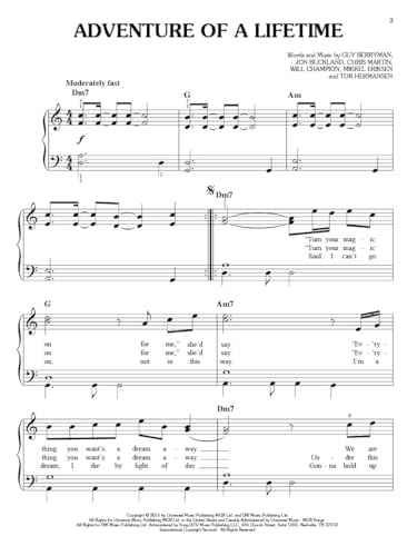 Coldplay The Best of Coldplay for Easy Piano * Play 16 of Coldplays Biggest Hits with Beginner-Friendly Arrangements * This second edition songbook from Hal Leonard brings Coldplays signature sound to developing pianists with simplified sheet music arrangements of the bands most popular songs. Designed for easy piano, each piece includes clear notation, basic chord symbols, and full lyrics, making it ideal for young players, adult beginners, and hobbyists. * * Easy Piano Sheet Music for Coldplay Fans * Whether you’re learning to read music or picking up piano again, this songbook balances musical accessibility with recognizable Coldplay hits, helping players build confidence while playing music they love. * * A Great Music Teacher Resource or Gift for Pianists * The thoughtfully arranged collection is perfect for piano teachers looking for engaging repertoire and makes a meaningful gift for Coldplay fans, music students, or any beginner looking for popular songs to play. * * Songs Included * Adventure of a Lifetime * Amsterdam * Clocks * Every Teardrop Is a Waterfall * Fix You * Green Eyes * Magic * Paradise * Princess of China * Rush of Blood * The Scientist * A Sky Full of Stars * Speed of Sound * Viva La Vida * A Warning Sign * Yellow