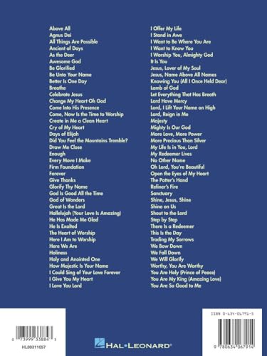 Celebrate the heart of worship with The Best Praise and Worship Songs Ever, a comprehensive sheet music collection for piano, vocal, and guitar. Featuring 80 all-time favorites, this edition brings together classic hymns and modern worship hits in an accessible, high-quality format. * * Each arrangement includes vocal melody, lyrics, chord symbols, and guitar chord diagrams, making it ideal for church musicians, worship leaders, and personal devotion. From Here I Am to Worship to I Could Sing of Your Love Forever, these songs uplift and inspire players across all skill levels. * * This extensive compilation is a must-have for worship bands, choir directors, and home musicians looking to enrich their spiritual and musical journey. With clear notation and thoughtful formatting, this book is not only a music teacher resource, but also a heartfelt gift for pianists or guitarists seeking to connect deeper through music. * * Songs Included: * Above All * Agnus Dei * All Things Are Possible * Ancient Of Days * As The Deer * Awesome God * Be Glorified * Breathe * Come Now Is The Time To Worship * Days Of Elijah * Here I Am To Worship * I Could Sing Of Your Love Forever * Open The Eyes Of My Heart * Shout To The Lord * We Bow Down * and 65 more.