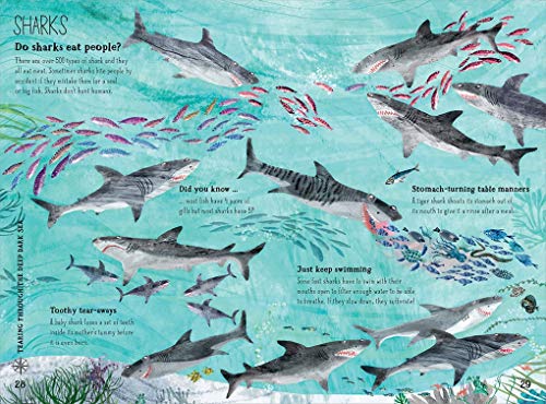 Following The Big Book of Bugs and The Big Book of Beasts, the hugely successful series takes to the sea! Following the wild success of The Big Book of Bugs and The Big Book of Beasts, The Big Book of the Blue is the third installment in Yuval Zommer’s beloved series. Alongside everything the young oceanographer needs to know, Zommer’s charming illustrations bring to life some of the slipperiest, scaliest, strangest, and most monstrous underwater animals. The book opens by explaining how different types of animals are able to breathe and survive underwater, and the different families to which they belong. Subsequent pages are dedicated to specific creatures, including sea turtles, whales, sharks, stingrays, and seahorses, and show varied life in specific habitats, such as a coral reef or deep sea bed. The Big Book of the Blue also explores the underwater world thematically, looking at animals in danger, learning how to spot creatures at the beach, and discovering how to do our part to save sea life. Beautiful and filled with fascinating facts, young, curious readers won’t be able to tear their eyes away from the page. Illustrated in color throughout