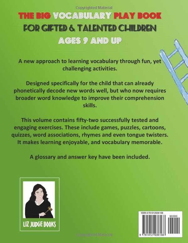 Expand your child’s vocabulary in a fun and engaging way with The Big Vocabulary Playbook for Gifted & Talented Children! This comprehensive workbook features: 52 diverse vocabulary-building activities and games Over 1,000 advanced words specifically selected for children ages 9 and up Activities categorized as Beginner, Advanced, and Expert levels Word puzzles, games, crosswords, and more to keep learning exciting Opportunities to use new words in context A full glossary of definitions Answer key included Perfect for: Gifted and talented students Children preparing for advanced placement tests Any child looking to expand their vocabulary and reading comprehension Developed by educator Liz Judge, this playbook transforms vocabulary learning from a chore into an adventure. The varied exercises reinforce word meanings through repetition and help words stick in long-term memory. This book has been created for parents or teachers to work with their children to expand their knowledge of higher-level vocabulary. The exercises and games have been designed to be more fun and entertaining than word lists, or standard flash cards by themselves. Although some of the activities can be done on their own, the main emphasis is to have a varied set of exercises that are engaging and memorable. Give your child the gift of a rich vocabulary that will serve them well throughout their academic career and beyond. The Big Vocabulary Playbook makes advanced language learning accessible and fun! Originally published as The Big 11+ Vocabulary Play Book in the United Kingdom.