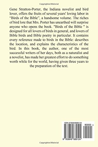Gene Stratton-Porter, the Indiana novelist and bird lover, offers the fruits of several years’ loving labor in “Birds of the Bible”, a handsome volume. The riches of bird lore that Mrs. Porter has unearthed will surprise anyone who opens the book. “Birds of the Bible ” is designed for all lovers of birds in general, and lovers of Bible birds and Bible poetry in particular. It contains every reference made to birds in the Bible: describes the location, and explains the characteristics of the bird. In this book, the author, one of the most successful writers of her days, both as a naturalist and a novelist, has made her greatest effort to do something worth while for the world, having given three years to the preparation of the text.