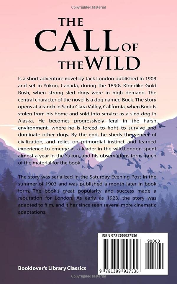 “He was mastered by the sheer surging of life, the tidal wave of being, the perfect joy of each separate muscle, joint, and sinew in that it was everything that was not death, that it was aglow and rampant, expressing itself in movement, flying exultantly under the stars.” — Jack London, The Call of the Wild The Call of the Wild is a novel by Jack London published in 1903. The story is set in the Yukon during the 1890s Klondike Gold Rush–a period when strong sled dogs were in high demand. The novel’s central character is a dog named Buck, a domesticated dog living at a ranch in the Santa Clara valley of California as the story opens. Stolen from his home and sold into the brutal existence of an Alaskan sled dog, he reverts to atavistic traits. Buck is forced to adjust to, and survive, cruel treatments and fight to dominate other dogs in a harsh climate. Eventually he sheds the veneer of civilization, relying on primordial instincts and lessons he learns, to emerge as a leader in the wild. London lived for most of a year in the Yukon collecting material for the book. The story was serialized in the Saturday Evening Post in the summer of 1903; a month later it was released in book form. The novel’s great popularity and success made a reputation for London. Much of its appeal derives from the simplicity with which London presents the themes in an almost mythical form. As early as 1908 the story was adapted to film and it has since seen several more cinematic adaptations. A Best Seller Classic that Belongs to all Booklover’s Library.