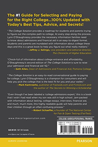 This bestseller has been completely updated to provide you with the answers that you need to find wonderful colleges and universities at more affordable prices. The second edition of The College Solution, which contains approximately 90% new material, is aimed at helping parents and teenagers become empowered consumers as they navigate through the college process. Billions of dollars are available to pay for college, but not everybody gets their share. It’s not always the families with the brightest students or the parents who are struggling financially who receive the most money. The College Solution shares the secrets of how you can capture some of this money for your own family. The book provides advice on such topics as financial aid, merit scholarships, athletic scholarships, admission hooks, the important differences between colleges and universities, college rankings, the best student loans and the latest online tools to evaluate the generosity of schools. O’Shaughnessy presents an easy-to-use, proven road map for getting past the ratings, and finding the right schools at the right price. No other book offers this much practical guidance on choosing and paying for college now – and no other book will save you as much money!