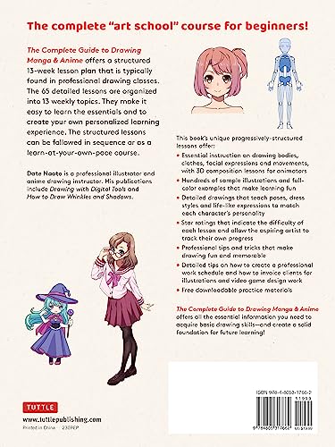 The complete manga, anime and video game “art school” course for beginners! The Complete Guide to Drawing Manga & Anime offers a structured 13-week lesson plan that is typically found in professional drawing classes. With 65 detailed lessons arranged into 13 weekly topics, it’s simple to learn the essentials and then progress to higher levels. You can create your own personalized learning experience as the structured lessons can be followed in sequence on a strict daily schedule or as an easy learn-at-your-own-pace course. With a hybrid focus this book offers skills for both digital and traditional artists learning to create manga and anime. This book’s unique progressively structured lessons offer: Essential basic instructions on drawing bodies, clothes, facial expressions, movements and poses with 3D composition for animation Hundreds of sample illustrations and full-color examples that make it easy to learn Detailed lessons that teach poses, dress styles and life-like expressions that match each character’s personality Star ratings for each lesson that indicate difficulty and allow the aspiring artist to follow and understand their own learning progress Professional tips and tricks that make learning fun and memorable Free downloadable practice materials, templates and guides The Complete Guide to Drawing Manga & Anime offers all the essential information needed to acquire basic drawing skills–creating a solid foundation for future learning!