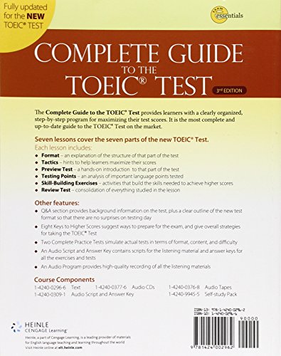 The Complete Guide to the TOEIC Test provides learners with a clearly organized, step-by-step program for maximizing test scores. It is the most complete and up-to-date guide to the TOIEC Test on the market.