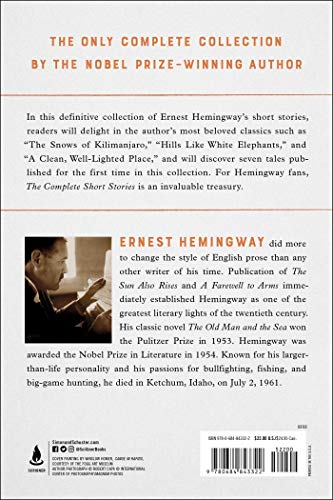 The complete, authoritative collection of Ernest Hemingway’s short fiction, including classic stories like “The Snows of Kilimanjaro,” “A Clean, Well-Lighted Place,” and “The Short Happy Life of Francis Macomber,” along with seven previously unpublished stories. In this definitive collection of the Nobel Prize-winning author’s short stories, readers will delight in Hemingway’s most beloved classics such as “The Snows of Kilimanjaro,” “Hills Like White Elephants,” and “A Clean, Well-Lighted Place,” and will discover seven new tales published for the first time in this collection, totaling in sixty stories. This collection demonstrates Hemingway’s ability to write beautiful prose for each distinct story, with plots that range from experiences of World War II to beautifully touching moments between a father and son. For Hemingway fans, The Complete Short Stories is an invaluable treasury.