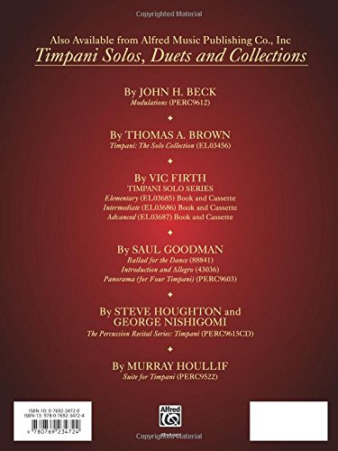 This is a complete and extensive method for timpani. Each essential skill is covered: basic theory (the building blocks of all music) * technique and facts (from sticking, muffling, and rolls to instrument care) * intonation (tuning of intervals, scales, glissandos, three and four timpani exercises) and a large selection of standard symphonic timpani repertoire (from the classics of Beethoven, Brahms, Rachmaninoff, Shostakovich, R. Strauss, Tchaikovsky, Wagner, and more).