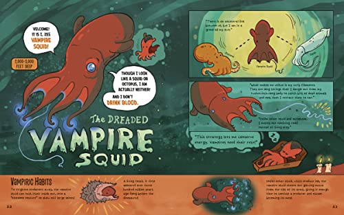 This graphic nonfiction book educates children on marine biology and animal adaptations in the deep ocean.