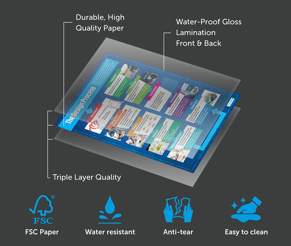 - SUPPLEMENT KNOWLEDGE: Our educational school posters are colorful, beautifully illustrated and contain a huge amount of valuable information. This Design Technology poster is specifically designed to help students gain a greater understanding of the design process. The wall chart is a great resource for Schools, Classrooms, Design Technology Teachers, Students, Tutors, Home School Parents and Home School Kids.