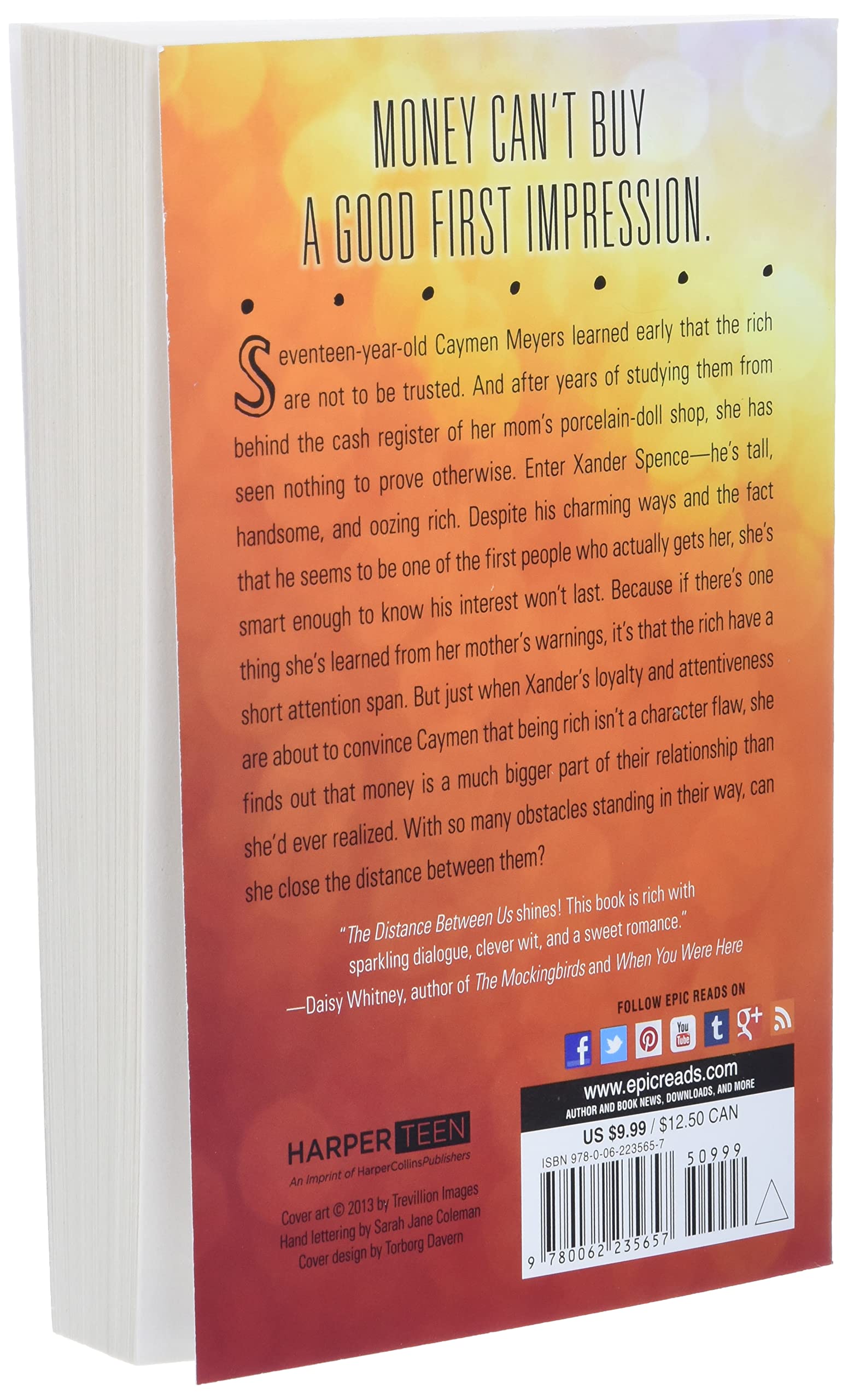 Money can’t buy a good first impression. Seventeen-year-old Caymen Meyers learned early that the rich are not to be trusted. And after years of studying them from behind the cash register of her mom’s porcelain-doll shop, she has seen nothing to prove otherwise. Enter Xander Spence–he’s tall, handsome, and oozing rich. Despite his charming ways and the fact that he seems to be one of the first people who actually gets her, she’s smart enough to know his interest won’t last. Because if there’s one thing she’s learned from her mother’s warnings, it’s that the rich have a short attention span. But just when Xander’s loyalty and attentiveness are about to convince Caymen that being rich isn’t a character flaw, she finds out that money is a much bigger part of their relationship than she’d ever realized. With so many obstacles standing in their way, can she close the distance between them?