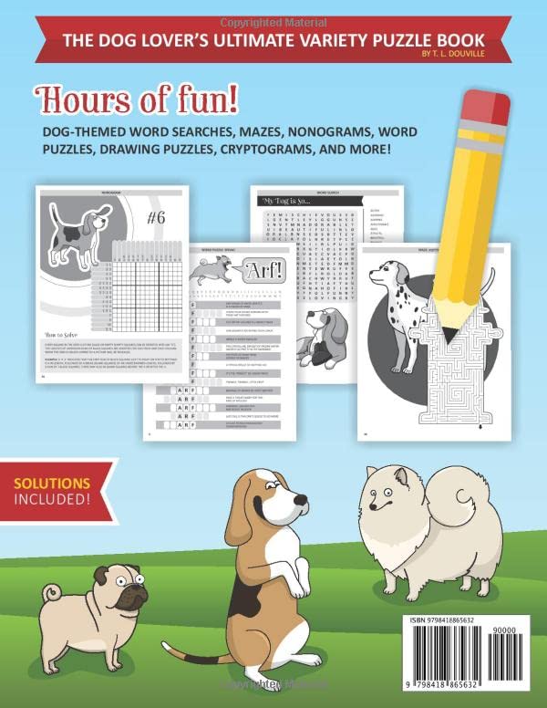 This puzzle book is sure to delight dog-loving teens, adults, and seniors with a wide variety of activities and brain teasers, ranging from easy to challenging! Features Include: Instructions on how to solve puzzles Full solutions Classic word searches, fun-to-solve nonograms, intricate mazes, cryptograms, word puzzles, drawing puzzles, and more! Graphically attractive page layouts Dog-themes in each and every challenge!
