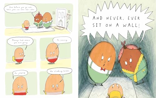 A JUNIOR LIBRARY GUILD GOLD STANDARD SELECTION NOMINATED FOR THE CARNEGIE MEDAL FOR ILLUSTRATION 2025 A joyous reversal of the traditional Humpty Dumpty tale of caution! Humphrey is an egg. An egg with very overprotective parents. “Remember Humphrey; never run, never jump and never ever EVER sit on a wall. You remember what happened to your uncle…”. Humphrey lives a very quiet and cautious life, until the day he bumps into Princess Jean (PJ) in the park. An adventurer through and through, PJ can’t understand why Humphrey doesn’t allow himself to have any fun. She tells him tales of all her antics and mishaps and they don’t notice the park is closing. Oh no! How will Humphrey get home? There’s only one way out. Over. The. Wall! When Humphrey finally faces his darkest fears, a surprising revelation lies on the other side. The Egg Incident is a laugh-out-loud graphic novel that will delight middle-grade readers who are tiptoeing towards independence themselves. It is a Junior Library Guild Gold Standard Selection. Written by Ziggy Hanaor, author of the critically acclaimed graphic novel, Alte Zachen: Old Things (Cicada, 2022), and hilariously brought to life in Daisy Wynter’s emotive illustrations.
