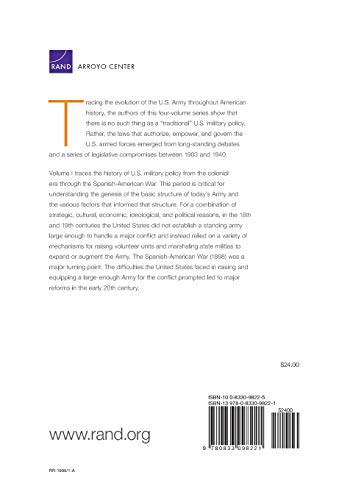 Tracing the evolution of the U.S. Army throughout American history, the authors of this four-volume series show that there is no such thing as a “traditional” U.S. military policy. Rather, the laws that authorize, empower, and govern the U.S. armed forces emerged from long-standing debates and a series of legislative compromises between 1903 and 1940. Volume I traces U.S. military policy from the colonial era through the Spanish-American War.