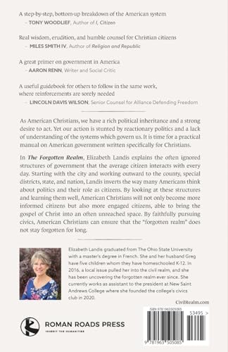 As American Christians, we have a rich political inheritance and a strong desire to act. Yet our action is stunted by reactionary politics and a lack of understanding of the systems which govern us. It is time for a practical manual on American government written specifically for Christians. In The Forgotten Realm, Elizabeth Landis explains the often ignored structures of government that the average citizen interacts with every day. Starting with the city and working outward to the county, special districts, state, and nation, Landis inverts the way many Americans think about politics and their role as citizens. By looking at these structures and learning them well, American Christians will not only become more informed citizens but also more engaged citizens, able to bring the gospel of Christ into an often unreached space. By faithfully pursuing civics, American Christians can ensure that the “forgotten realm” does not stay forgotten for long. WHO IS THIS BOOK FOR? For citizens. This book is a practical manual for the citizen who wants to understand how the governmental structures all around them works. It will demystify what occurs in their own town, county, and state. For students. This book forms the core of a semester-length civics course at the high school or college level. As a practical manual, there is plenty to do in and out of the classroom. For clergymen. When America was founded, there was a company of pastors known as the “Black Regiment.” These pastors, wearing the black Genevan gowns of clergymen of the time, were leaders as well as shepherds. While the civil realm is distinct from the ecclesiastical realm, they are both under the Lordship of Jesus Christ, and clergymen are essential in leading, instructing, and encouraging their flocks in the affairs of the civil realm. For Christians. Finally, this book is for Christians. It is not that a non-Christian cannot greatly benefit, but this book presupposes a Christian audience. John Adams said, “Our constitution was made only for a moral and religious people. It is wholly inadequate to the government of any other.” The non-Christian is warmly invited to come along, and it is our sincere hope that the end result would be an understanding that there is no true freedom apart from the freedom found in Jesus Christ. Table of Contents Introduction Foreword by Miles Smith IV Chapter 1: The Realm of Civil Government & Dual Citizenship Chapter 2: Layers of Law–The Cornerstone Chapter Chapter 3: City Government Chapter 4: County-Equivalent Government Chapter 5: Special Districts, Independent Cities, Townships & Regional Governments Chapter 6: State Government Chapter 7: National Government Chapter 8: Voting, Elections & Parties Chapter 9: Christian Diplomacy Conclusion Appendix A: The Declaration of Independence Appendix B: The United States Constitution & Bill of Rights Appendix C: Thomas Jefferson’s Letter to the Danbury Baptists Appendix D: Establishment & Enablement of State Agencies Appendix E: Civic Parenting Appendix F: All Sorts of Districts Glossary Bibliography
