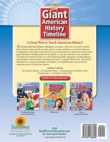 This is the second book in the Giant American History Timeline series. Students Complete Activity Sheets and Create Giant American History Timelines! “The Activity Sheets Make the Timelines!” Perfect for Homeschool and Classroom Walls 135 Creative and Engaging Activity Sheets * 16 Timeline Plans * Make Your Own Custom Timelines * Major American Historical Periods, Events, Individuals, Inventions, and Ideas * Extensive Parent/Teacher Notes Including Historical Backgrounds and Great Teaching Ideas * Assessments * Complete Answer Key More than an ordinary timeline, The Giant American History Timelines are specially created to show relationships among historical developments. As students’ knowledge grows, so do their Giant Timelines. The result is a gorgeous and satisfying project that showcases their accomplishments and gives them an ongoing review of American history. As kids modify and expand their timelines, they learn American history and the critical thinking skills they will use throughout their lives. Grades 4 and up * Aligned with the National Council of Social Studies “Ideal Forms of Social Studies Teaching and Learning” Creating Giant Timelines is as Easy as 1-2-3! 1. Students complete Activity Sheets *126 Activity Sheets organized into 8 historical units.*Each Activity Sheet focuses on an important date, event, person, place, or idea.*Students create and complete maps, complete and extend graphic organizers, analyze primary sources, answer questions, write, caption illustrations, create graphs, compare and contrast time periods, and more.*A variety of formats engage students of all ability levels and learning styles in individual and group work.*High-interest Activity Sheets include Map Study, Biography, A Voice from the Past, Time Machine, and Postcard from the Past.*Incorporates critical thinking skills, including chronological thinking, main idea and details, comparing and contrasting, cause and effect, and more.*Interdisciplinary activities connect social studies, language arts, science, mathematics, fine arts, and physical education. 2. You and your kids create Giant Timelines with the Activity Sheets *Create a comprehensive picture of all major periods in American history from Pre-Colonization through Reconstruction.*Two timeline plans are provided for each unit. One is a basic chronology and the other portrays complex historical developments.*You can also customize timelines for any time period, or historical theme, or critical-thinking skill.*Create an interactive environment in which stimulating learning experiences are created. 3. Guide your students with extensive teaching materials *60 pages of parent and teacher support.*16 timeline plans are provided, from the simplest chronology to the complex historical developments.*Detailed teaching directions for each unit include Unit Overview, Focus Activities, Constructing the Timeline, Critical Thinking Skills, Individual Activity Sheet Notes, and a Unit Assessment.*Complete Answer Keys for all Activity Sheets and assessments. Comprehensive Coverage *Introduction*Unit 1 Industrial Growth and Technological Advancement: 1870-1910*Unit 2 Big Business and Social Reform: 1870-1910*Unit 3 America and the World: 1867-1910*Unit 4 World War I: 1910-1920*Unit 5 The Roaring Twenties and the Great Depression: 1920-1940*Unit 6 World War II: 1930-1950*Unit 7 The Cold War: 1940-1990*Unit 8 The Civil Rights Movement, Technology, and Terrorism: 1954-Present*Assessments*Answer Key