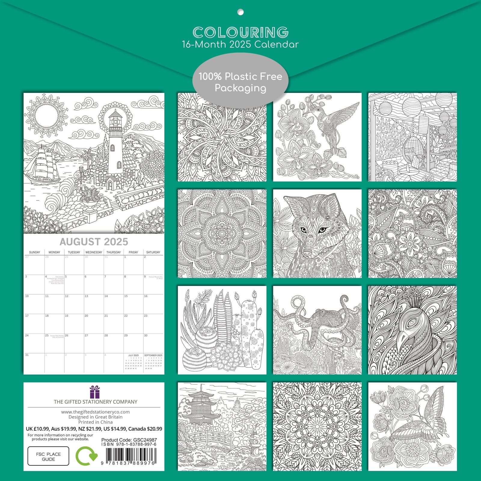 The Gifted Stationary Square Wall Calendar 2025, Colouring, 16-Month Lifestyles Theme Hanging Calendar with 180 Reminder Stickers, Monthly Family Planner for Home & Creative Spaces, 30 x 30 cm