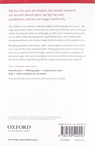 Apuleius’s Golden Ass is a unique, entertaining, and thoroughly readable Latin novel–the only work of fiction in Latin to have survived from antiquity. It tells the story of the hero Lucius, whose curiosity and fascination for sex and magic results in his transformation into an ass. After suffering a series of trials and humiliations, he is ultimately returned to human shape by the kindness of the goddess Isis. Simultaneously a blend of romantic adventure, fable, and religious testament, The Golden Ass is one of the truly seminal works of European literature, of intrinsic interest as a novel in its own right, and one of the earliest examples of the picaresque. This new translation is at once faithful to the meaning of the Latin, while reproducing all the exuberance of the original. About the Series: For over 100 years Oxford World’s Classics has made available the broadest spectrum of literature from around the globe. Each affordable volume reflects Oxford’s commitment to scholarship, providing the most accurate text plus a wealth of other valuable features, including expert introductions by leading authorities, voluminous notes to clarify the text, up-to-date bibliographies for further study, and much more.