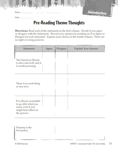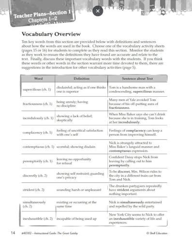 The Great Gatsby: An Instructional Guide for Literature is the perfect tool to familiarize students with this well-known novel and encourage them to connect the story with actual events and issues from the 1920s. By completing rigorous and appealing cross-curricular lessons and activities, students will learn to analyze story elements in multiple ways, practice close reading and text-based vocabulary, determine meaning through text-dependent questions, and more. Each activity and lesson work in conjunction with the text to teach students how to analyze and comprehend rich, complex literature.