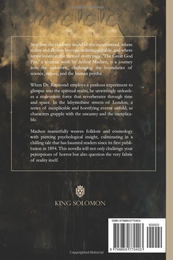 Step into the shadowy world of the supernatural, where reality and illusion become indistinguishable, and where terror looms at the turn of every page. ‘The Great God Pan,’ a seminal work by Arthur Machen, is a journey into the unknown, challenging the boundaries of science, nature, and the human psyche. When Dr. Raymond employs a perilous experiment to glimpse into the spiritual realm, he unwittingly unleashes a malevolent force that reverberates through time and space. In the labyrinthine streets of London, a series of inexplicable and horrifying events unfold, as characters grapple with the uncanny and the inexplicable. Machen masterfully weaves folklore and cosmology with piercing psychological insight, culminating in a chilling tale that has haunted readers since its first publication in 1894. This novella will not only challenge your perceptions of horror but also question the very fabric of reality itself.