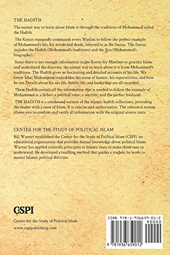 The Hadith The Koran repeatedly commands every Muslim to follow the perfect example of Mohammed’s life. His actions and words are called the Sunna. The Sunna is found in the Traditions of Mohammed called the Hadith. A Muslim is far more governed by the Hadith than the Koran. The Hadith give us fascinating accounts about Mohammed. We know what he looked like, his sense of humor, his superstitions and how he ate. Details about his sex life, family life and leadership are all recorded. If only the Koran existed, there could be no Islam. The Koran does not have enough information to practice Islam, but the Hadith has all that is needed to follow the example of Mohammed as a husband, a father, a leader, a warrior and the perfect husband. The Hadith is an easy place to begin learning about Mohammed and Islamic doctrine.This book is a condensation of The Political Traditions of Mohammed